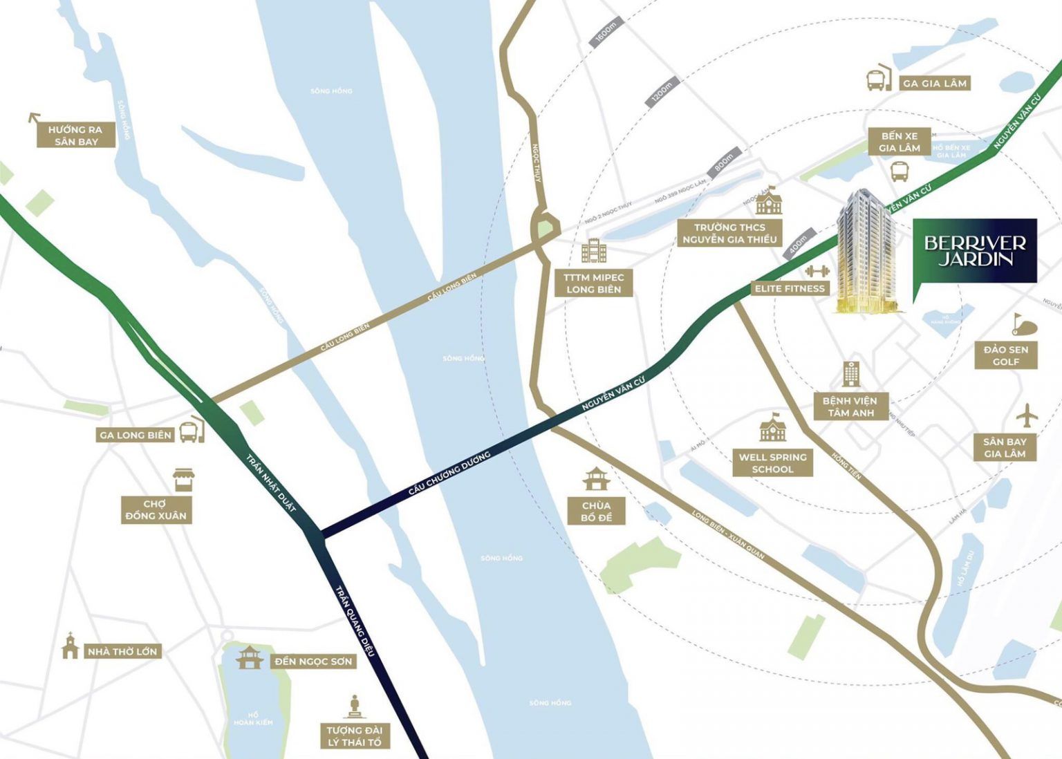 Cư dân sinh sống tại Berriver Long Biên có thể dễ dàng kết nối với chỉ: